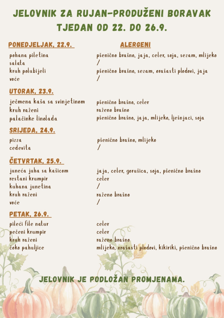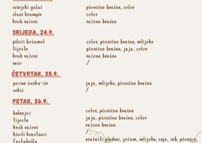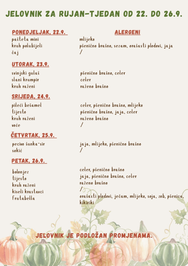 stigla je nova školska godina i s njom novi tjedni jelovnici! Na ovoj stranici moći ćete pratiti što se svaki dan nudi u školskoj kuhinji.