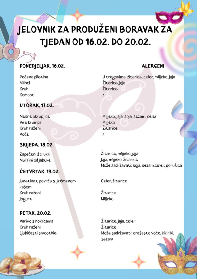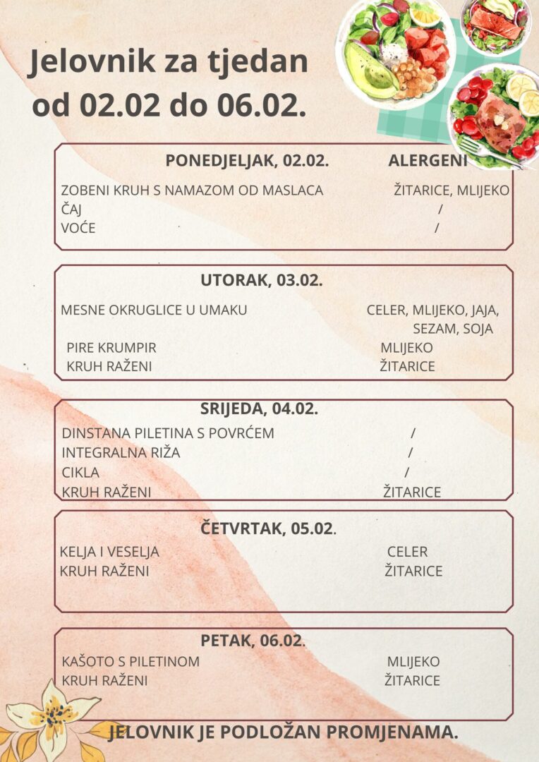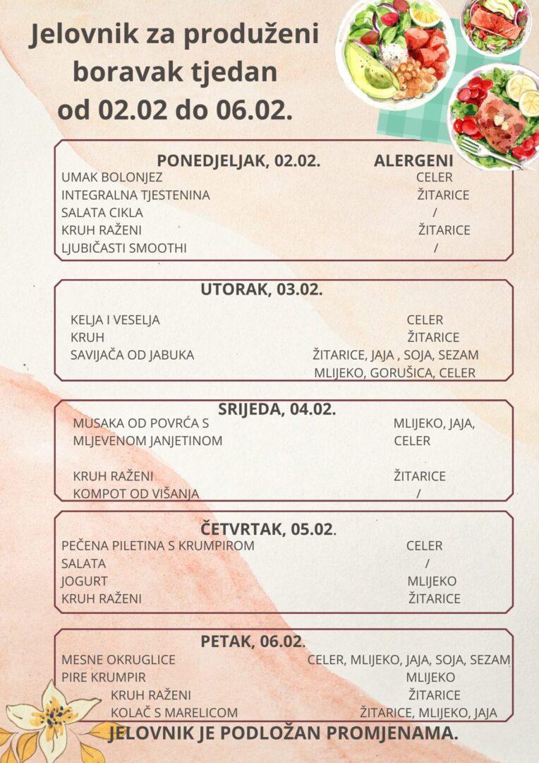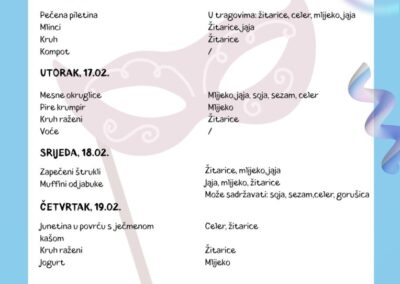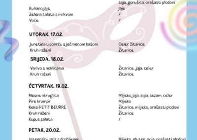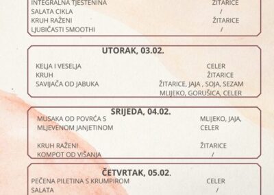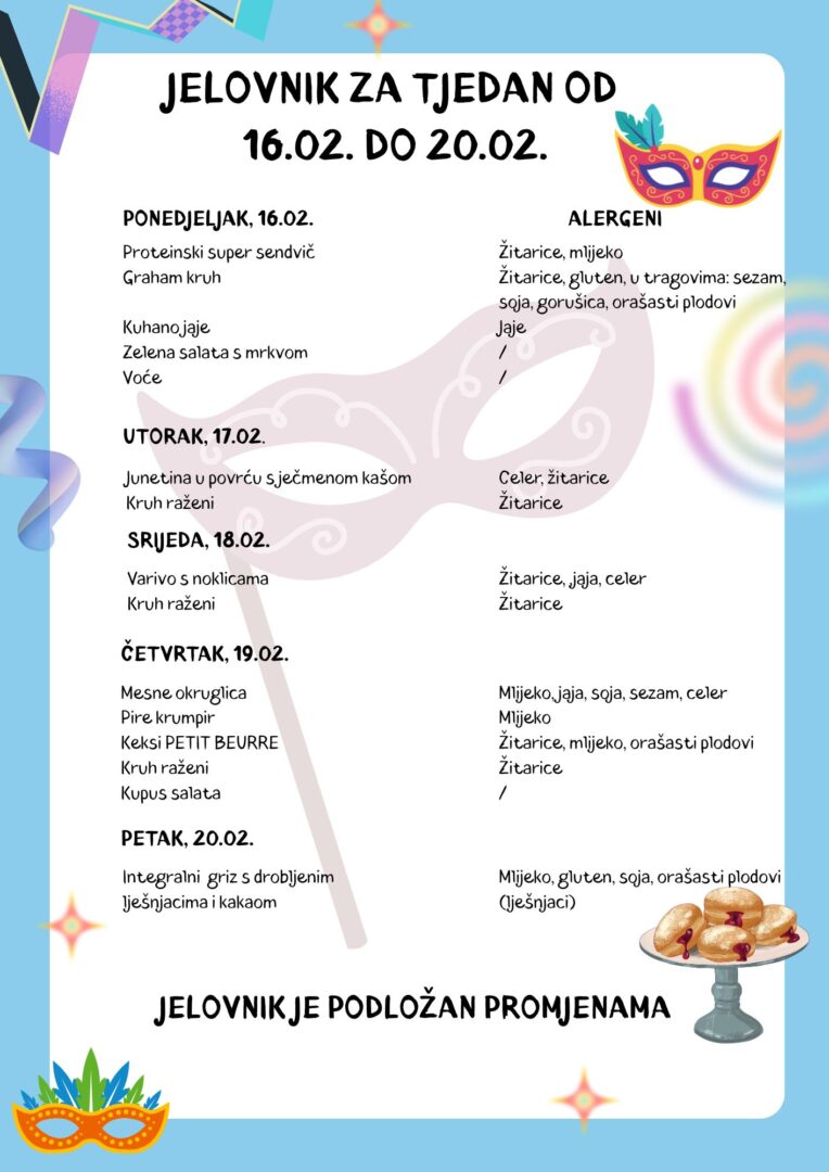 U veljači nastavljamo s jelovnicima koji su pažljivo osmišljeni u suradnji s nutricionistima, s ciljem osiguravanja uravnoteženih, zdravijih i nutritivno bogatih obroka za naše učenike.