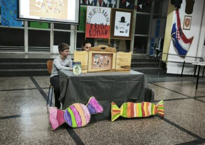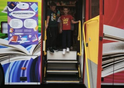 Djeca su sudjelovala na radionicama, fotografirala se u foto kutku, čitala u kutku koji smo uredili za čitanje, obilazila bibliobuse. Za kraj su pogledali dječju predstavu „Po Sloveniji s popotnikom Jankom“ u izvedbi ljubljanskog kazališta Enostavno prijatelji.