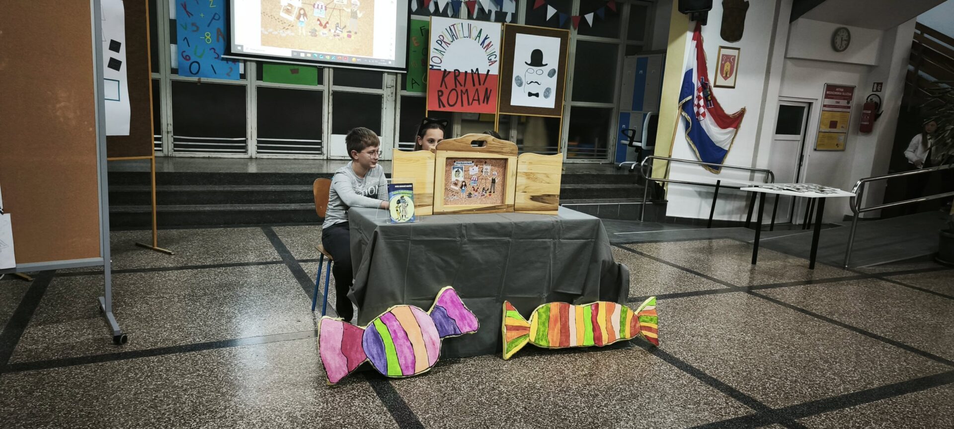 U studenom naši su učenici Gabriela Golubić, Matej Matijaš i Lisa Čulig sudjelovali na završnoj predstavi projekta „Moja prijateljica knjiga“ u OŠ „Slava Raškaj“ Ozalj. Generalnu probu imali su u holu škole i pokazali učenicima razredne nastave što su pripremili. Pripovijedali su detektivski roman autorice Nives Madunić Barišić „Tajna čokoladnih bombona“ tradicionalnom japanskom tehnikom pripovijedanja – kamišibajom i odlično su ispunili svoj zadatak.
