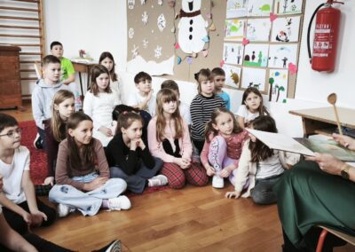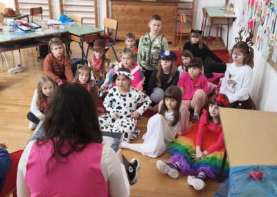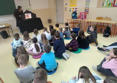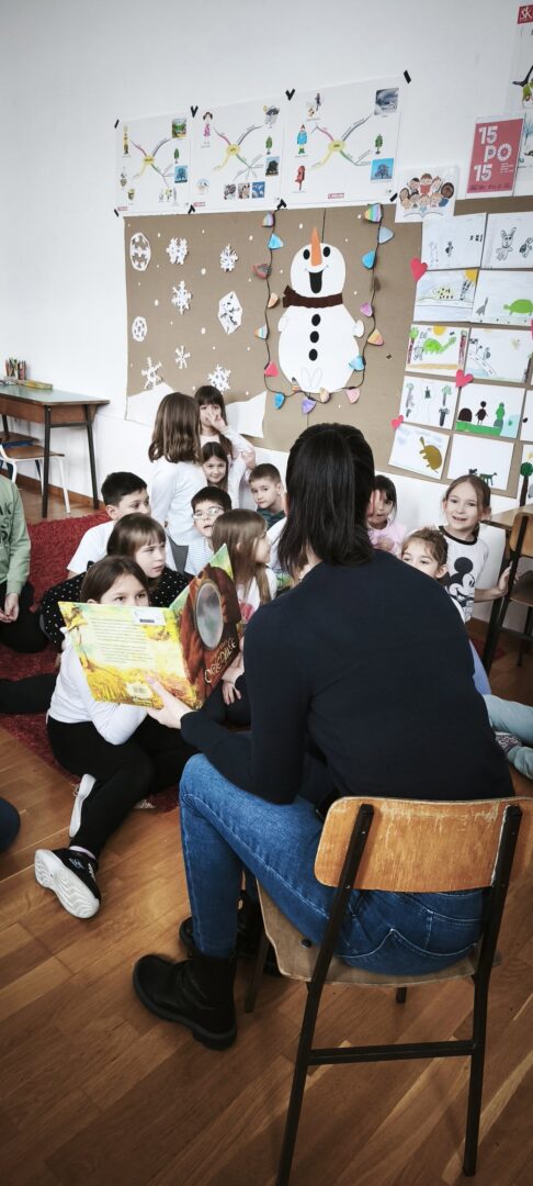 Sudjelovali smo u Nacionalnom programu za poticanje čitanja djeci od najranije dobi pod nazivom „Rođeni za čitanje“ koji provodi Ministarstvo kulture i medije, čitalačkom izazovu „15 po 15 – cijela Hrvatska čita djeci“ koji je trajao od 15. siječnja do 29. siječnja 2026. godine. Svakodnevno smo čitali u produženom boravku, djeci je čitala ravnateljica, stručne suradnice, učiteljica, stariji učenici, knjižničarka i djeca sama. Tijekom trajanja ovog čitalačkog izazova u posjet nam je stigla gospođa Vera Pfaff iz udruge Kozlići koja je učenicima 1. a i 2. a razreda pripremila izvrsnu kamišibaj predstavu „Pale sam na svijetu“ i to zahvaljujući Gradskoj knjižnici „Ivan Goran Kovačić“ iz Karlovca kojoj zahvaljujemo na lijepoj suradnji isto kao i knjižničarima bibliobusa iz njihove knjižnice te bibliobusa Knjižnice Milana Jarca Novo mesto.