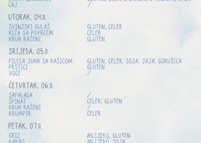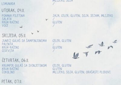 Dani su sve kraći, a jutra sve hladnija, ali na našim tanjurima i dalje je puno boja i okusa. U mjesecu koji donosi prve prave znakove zime, posebno prija topli ručak nakon nastave i igre na školskom dvorištu. Na jelovniku vas čekaju jela koja griju, jačaju i pomažu da svaki školski dan privedemo kraju puni snage, koncentracije i dobrog raspoloženja.