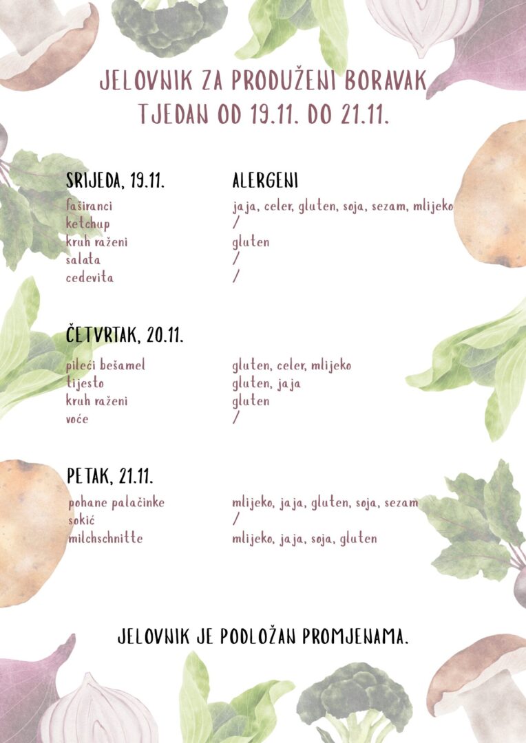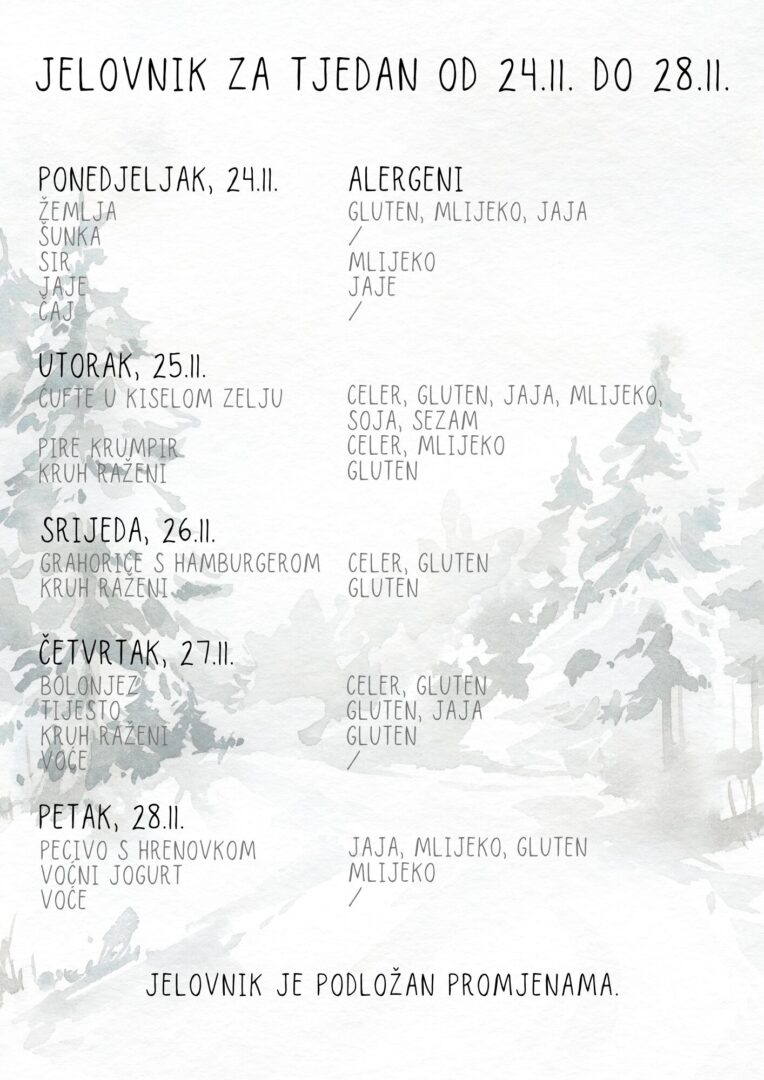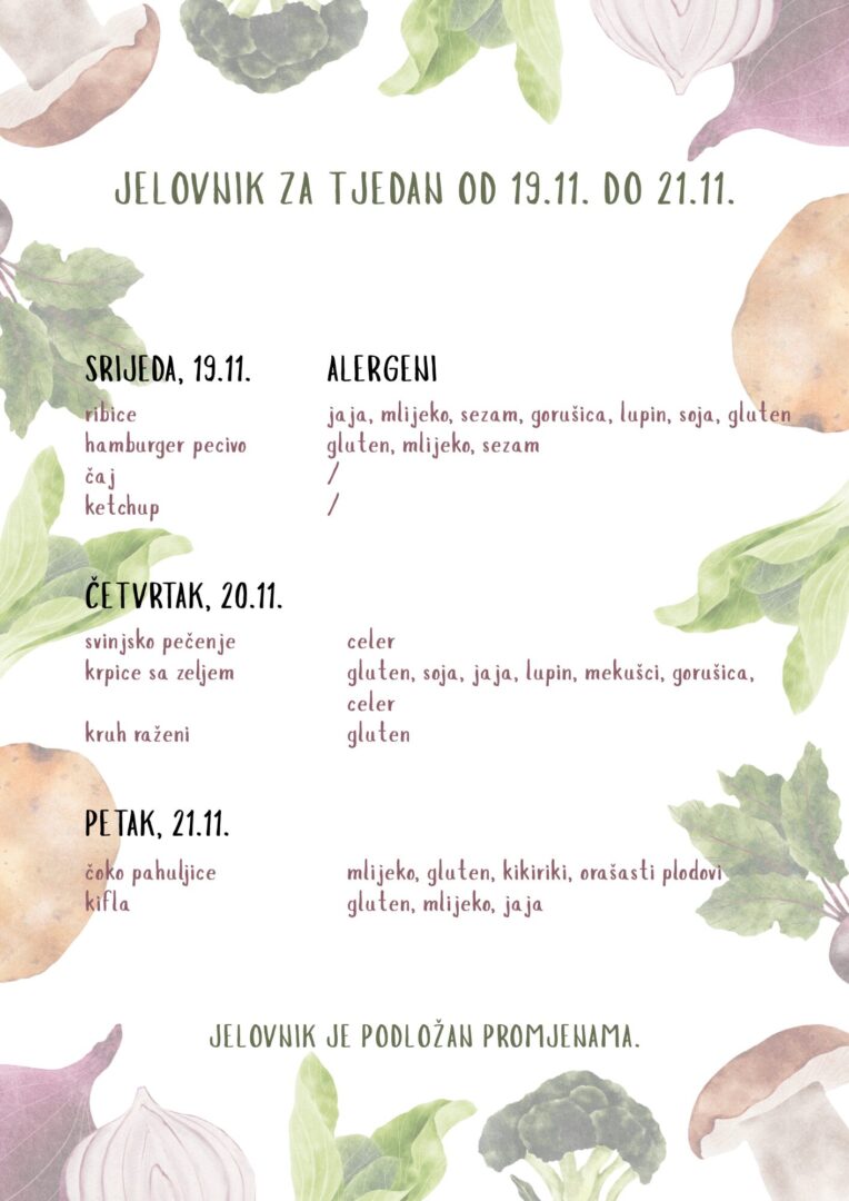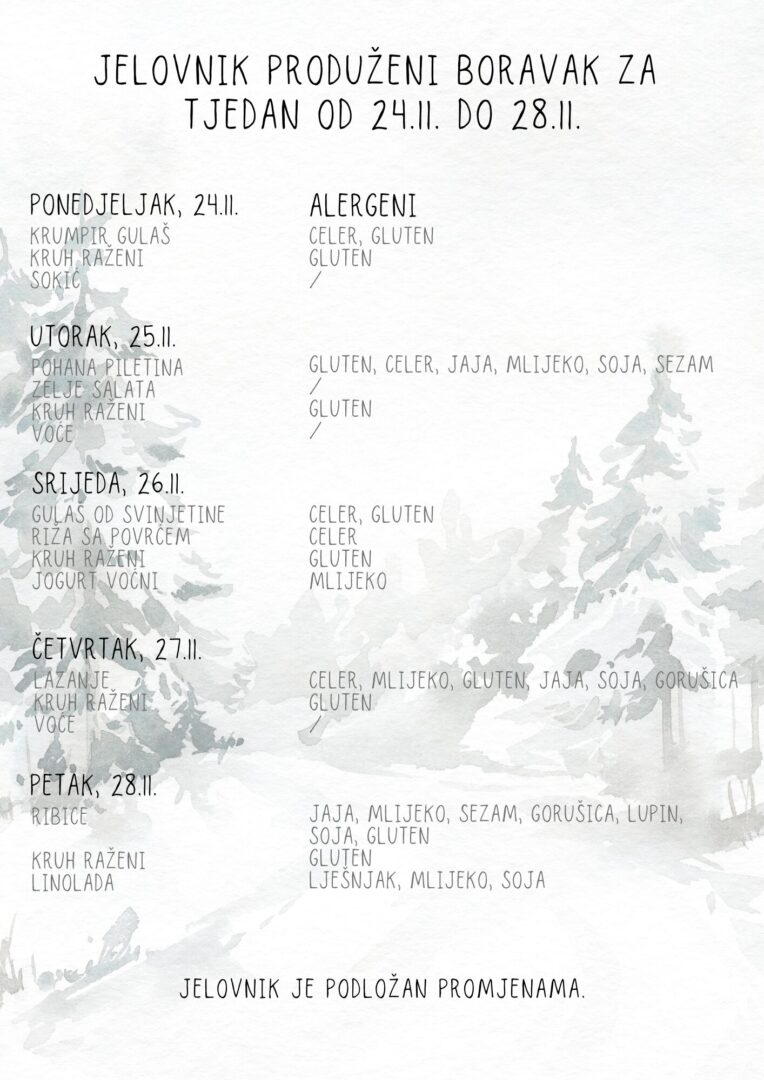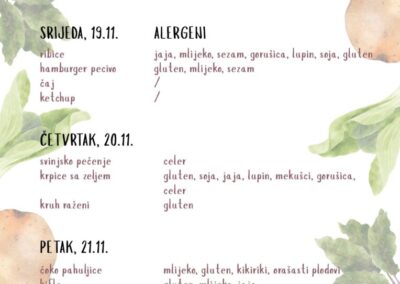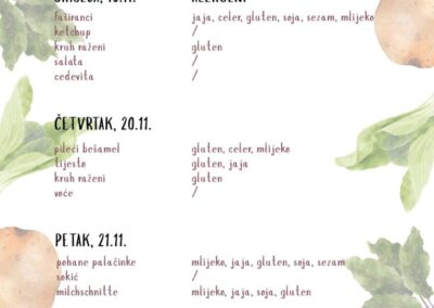 Dani su sve kraći, a jutra sve hladnija, ali na našim tanjurima i dalje je puno boja i okusa. U mjesecu koji donosi prve prave znakove zime, posebno prija topli ručak nakon nastave i igre na školskom dvorištu. Na jelovniku vas čekaju jela koja griju, jačaju i pomažu da svaki školski dan privedemo kraju puni snage, koncentracije i dobrog raspoloženja.