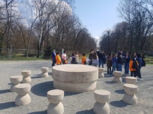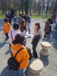 Sljedeći radni dan bio je predviđen za upoznavanje grada Targu Jiu, gdje smo i bili smješteni. Grad je smješten u okrugu Gorj, a to je ujedno i najveći grad okruga. Kroz interaktivnu igru „Potraga za blagom“ upoznali smo glavne kulturne znamenitosti grada : „The Table of Silence“ – Stol tišine, „The Kissing Gate“ – Vrata poljubaca i „The Infinity Column“ – Stup beskonačnosti . Te skulpture čine kiparski ansambl poznatog umjetnika Constantina Brancusija, a raspoređene su na pravcu koji se pruža 1.3 km od zapada prema istoku grada. Otkrili smo i ostale čari grada Targu Jiu, te posjetili još jednu školu u kojoj je održana radionica nakon koje smo bolje razumjeli razlike ali i zajedničke vrijednosti sudionika našeg projekta.