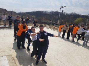 A kako i priliči, nakon fizičkih aktivnosti potrebna je okrepa, stoga smo se iz prostorija škole prebacili u „Dom Kulture“ Berlesti, gdje su nam domaćini predstavili lokalne tradicije iz okruga Gorj – specifične narodne nošnje i tradicionalne plesove, te ponudili večeru s rumunjskim specijalitetima.