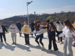 Nakon tople dobrodošlice krenulo je upoznavanje učenika kroz izradu narukvica prijateljstva – znak solidarnosti, prihvaćanja i suradnje među učenicima iz različitih zemalja. Uslijedile su aktivnosti vezane za zaštitu okoliša „Mali ekolog“, gdje su učenici sadili cvijeće i surađivali na izradi plakata koji podržavaju recikliranje i zaštitu okoliša.