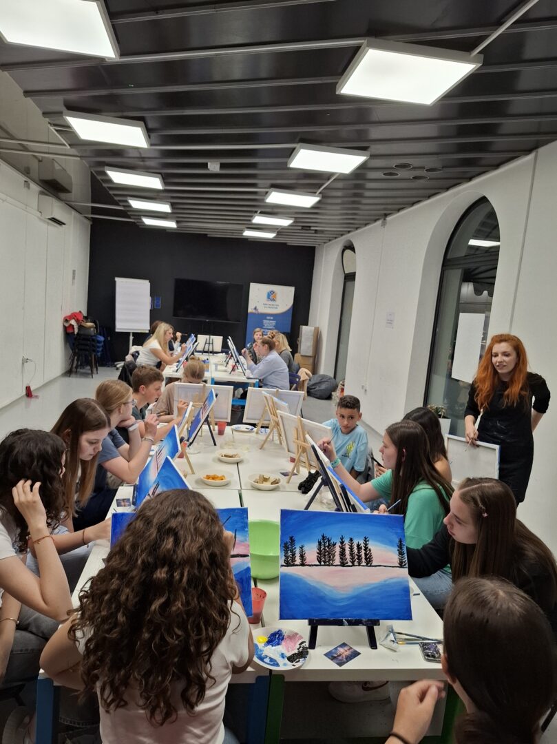 Prijepodne zadnjeg radnog dana proveli smo u našem školskom vrtu uz jezerce, gdje smo zajednički zasadili razne biljke u i oko jezerca, a koje će nas trajno podsjećati na ovaj Erasmus projekt i na naše drage internacionalne prijatelje. Nakon “napornog” rada, počastili smo se roštiljem i tortom, te se uputili u Karlovac na razgled grada. Također smo posjetili i Nikola Tesla Experience Center, gdje su naši gosti saznali zanimljivosti o životu Nikole Tesle, isprobali interaktivne eksponate i upoznali mjesto gdje se znanost susreće sa zabavom. Na samom kraju mobilnosti, održali smo likovnu radionicu “Paint and juice”, gdje smo slikali maglovite vizure Karlovca, te uz dobru zabavu i druženje priveli kraju naš zanimljivi projekt WOT.
